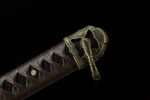 - Leather-Wrapped Wood Saya: Protective scabbard with premium finish