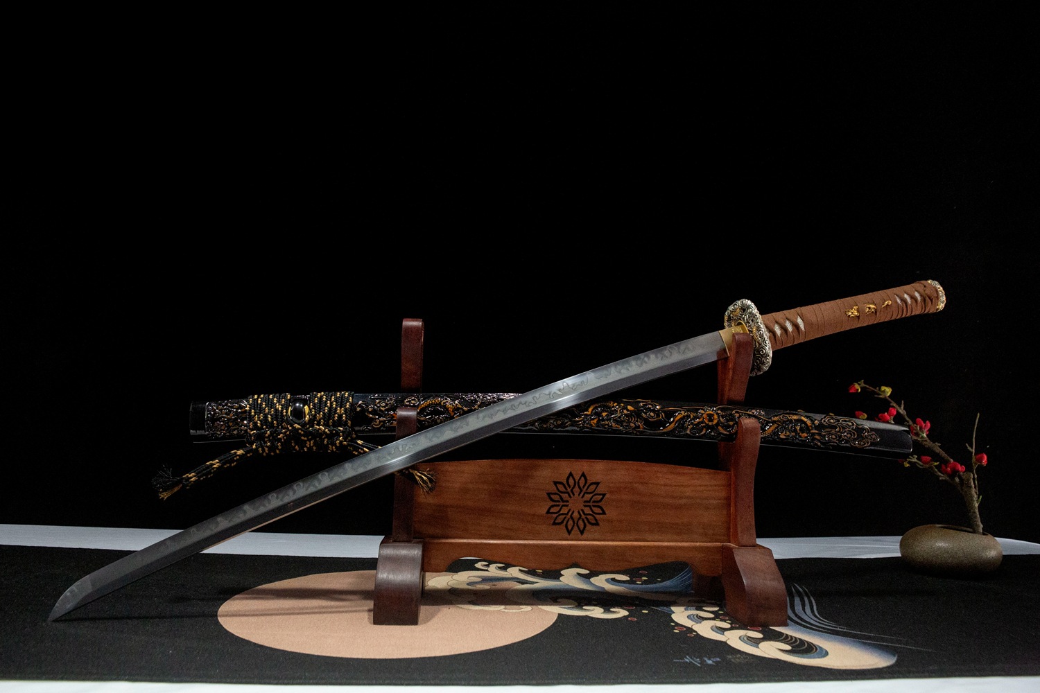 Scorching Sand: Hand Forged Japanese Katana T10 Steel Blade Black Saya